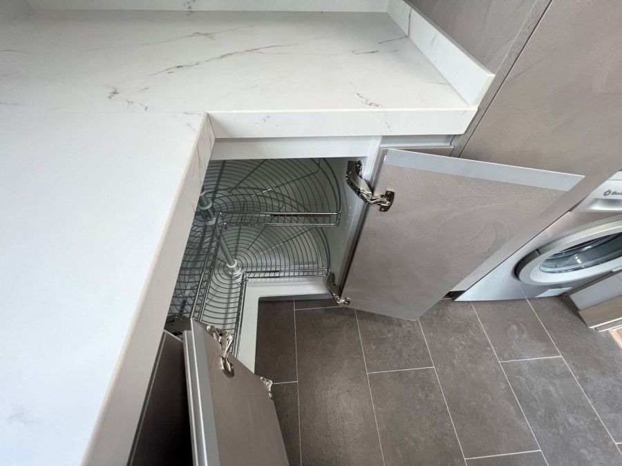 reformas integrales de cocinas en Zaragoza, salvador minguijón 19, ampliación de cocina tomando parte de galería, muebles bajos y columnas lagui lara royal, muebles altos ocean gris caliza